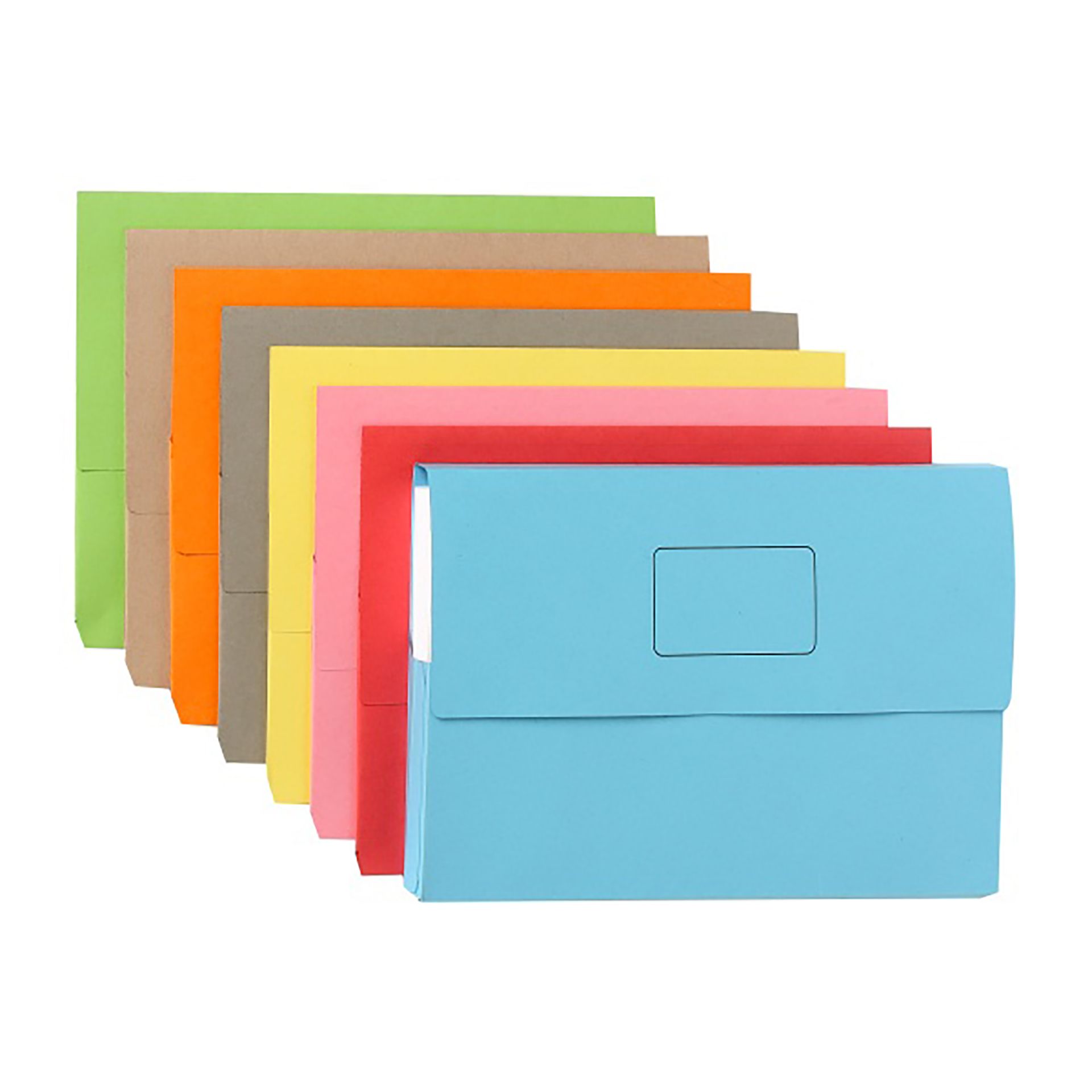 Product Description Foolscap wallet in a wide range of bright colours Product Features • Features name panel to label your wallet Holds large amount of A4 and FC paper with a 30mm gusset • Fits into your standard filing system • Made from strong printed manilla board